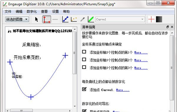 1、用Engauge Digitizer的 file>import功能导入一张图片2、Digitize>Axis Point