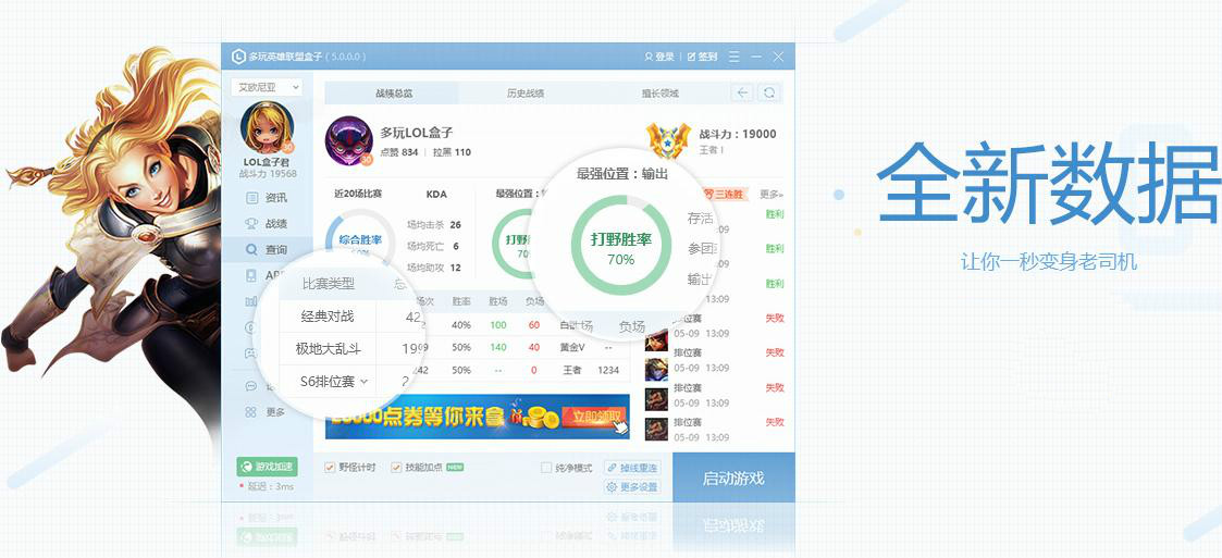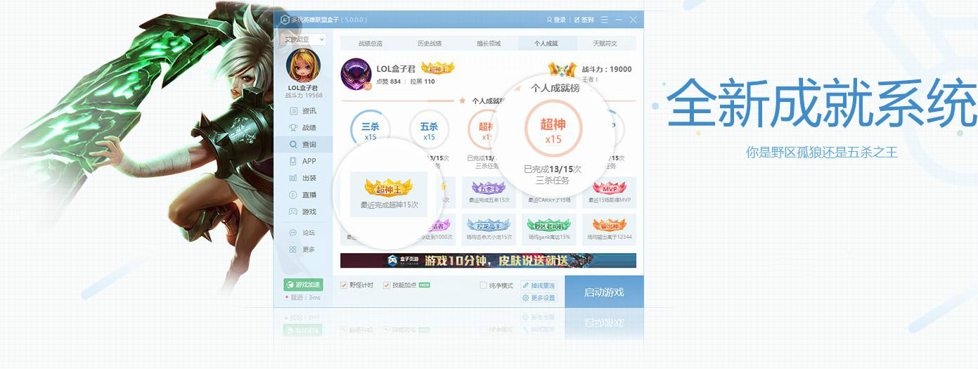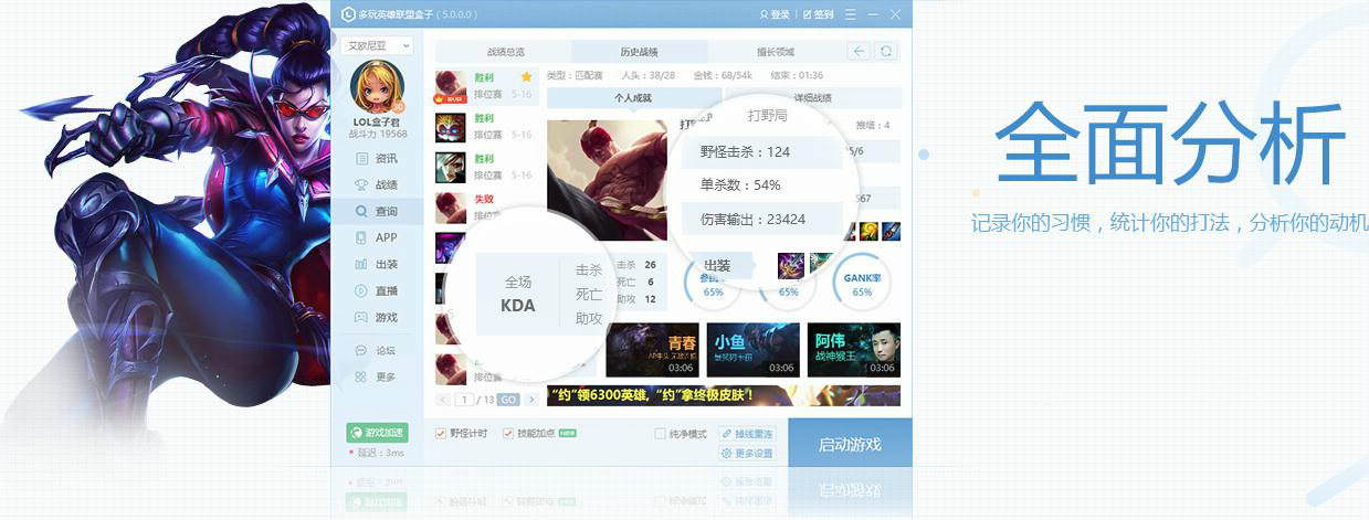 lol盒子是LOL新手玩家必备的辅助工具,LOL盒子能够提供新手玩家许多便捷的功能:1 显示玩家的基本信息