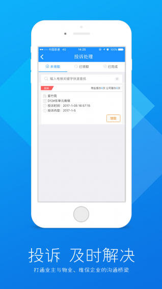 1.应急救援:第一时间接收电梯故障,全面实现故障信息及时有效处理。2.投诉管理:打通业主与物业/维保企业的沟通桥梁,及时有效解决问题。