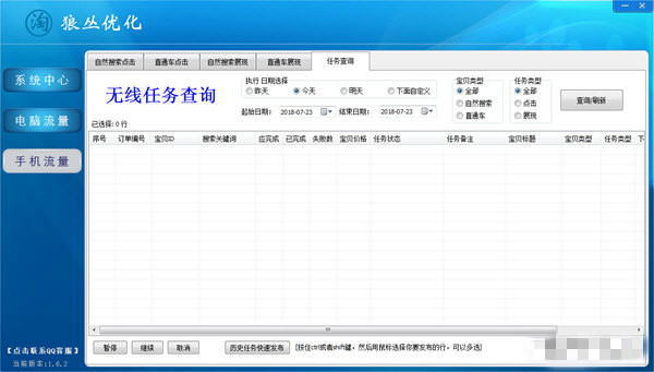手机流量:自然搜索点击、直通车点击、自然搜索展现、直通车展现、任务查询