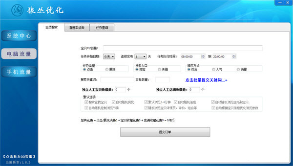 系统中心:通知说明、用户中心、充值中心、账户明细、有奖建议与反馈电脑流量:自然搜索、直通车点击、任务查询