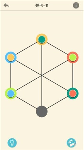 点击圆盘上的颜色小球移动位置,把颜色小球移动到对应颜色的圆盘上通关。游戏画面简洁,操作简单。以休闲、娱乐、益智为目的。