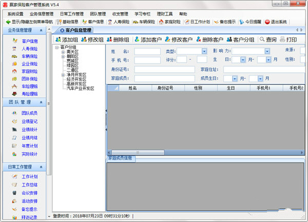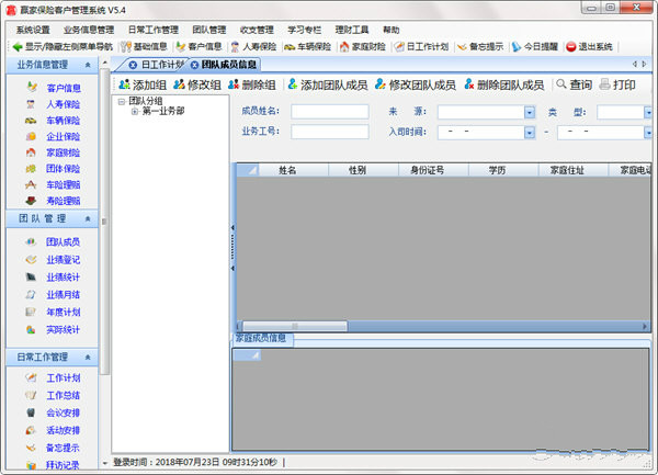 4.软件管理的信息全面,已成交客户、未成交客户、正式团队成员、准团队成员、客户保单、团队和个人的业绩及人力都可可以通过这套软件进行管理,已成交客户、未成交客户、正式团队成员、准团队成员可以进一步定义类型、来源、影响力中心等属性;