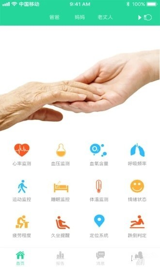三轴加速度+气压计+独特算法结合心率等身体数据及时判定跌倒、遇险、病发、晕倒等情况,并在第一时间将信息反馈给家属,让佩戴人及时得到救助,预防异常情况。
