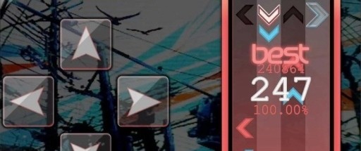 在游戏中,玩家需要利用键盘的方向键,通过按下对应的方向的音乐符号消除从上方下落的音乐字符;