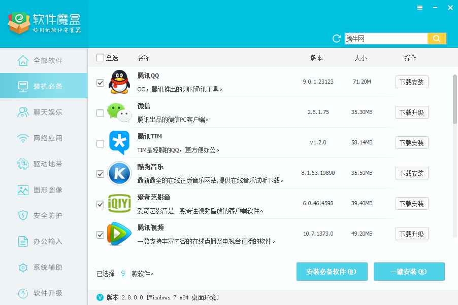 软件魔盒是为用户获取软件、定制离线安装包、直接在线安装的一款便捷软件,通过软件盒子可以便于管理软件包,方便、快捷的管理软件及安装软件。【软件特色】