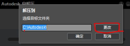 1、下载并解压,在弹出来的对话框中,选择你要解压缩到的文件夹,默认的文件夹为 C:\Autodesk\,这里可以解压到自己习惯的盘里面或者直接把C盘改成D盘,这是解压文件,安装之后可以删除。
