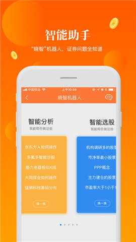 【特色功能】免费查看个股筹码分布,多空信号,相似K线,走势叠加等特色功能【智能选股】用户可以进行多因子自由组合,闪电筛选出标的股