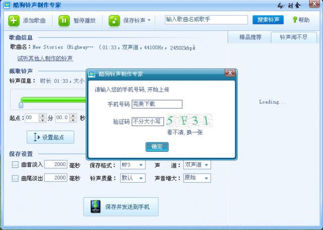7、支持在线搜索铃声,共享酷狗p2p资源10.双声道、单声道选择工作窗口