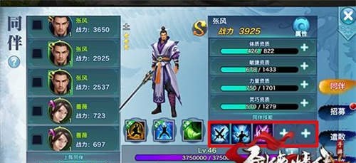 在武神殿、英雄挑战、武林盟主、华山论剑等活动中,同伴可以和玩家一同出战。但是在更多的时候,同伴为主角提供护主技能来帮助主角战斗。同伴战力越高,护主技能越强,对主角的帮助越大。玩家想获取同伴,同伴招募是主要途径之一。招募分为银两购买和元宝购买。银两购买有机会获得A、B、C级同伴,元宝购买有机会获得S、A、B级同伴,并有极小概率获得SS级同伴。当招募一些不需要的同伴,可以选择同伴遣散,遣散同伴将有几率获得资质丹、洗髓丹和经验药水,同伴品质越高,潜质和同伴技能越优秀,获得的资质丹和洗髓丹越多,同伴等级越高,获得经验药水越多。