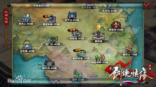 世界地图有武夷山、雁荡山、锁云渊、苗岭、剑门关、点苍山等地图,这些地图都有进入等级要求。各种野外地图都没有传送口或传送员,不过玩家可通过任务提示,或者通过界面右上角的小地图,进入到世界地图界面,点击要想前往的地图,就能快速传送到达各种野外地图的完全区域里。