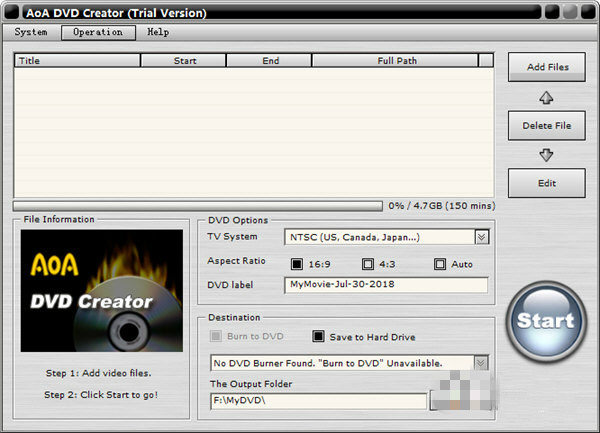 单击“添加文件”按钮将要烧录的视频文件添加到DVD。或者将视频文件直接拖放到程序中的文件列表窗口中。