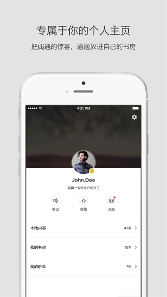 “静雅思听App”是华语世界唯一一款以“智慧声音”为理念的有声读物软件。我们将悉心挑选的各类好书、好文章,录制成十几分钟的mp3,供听友收听下载。内容涵盖历史、文化、军事、环球、商业、励志、生活、情感等诸多方面,轻松地为您讲述历史、生活和世界。“静雅思听App”界面清新、操作便捷、功能强大,您可以在线收听,可以下载收藏,也能够方便地管理本地内容,建立播放列表,边走边听。我们愿做您随时随地的良师益友,为您传递这世界上最朴素、最真实、最震撼的声音,那便是“通往幸福之路”的真谛。