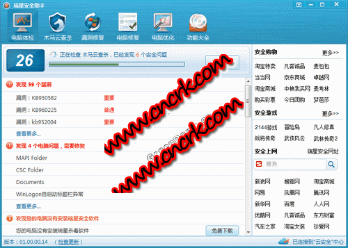 瑞星安全助手(原卡卡上网安全助手) Beta 简体中文官方安装版 瑞星安全助手beta版(前身为瑞星卡卡上网安全助手)是瑞星公司全新开发,解决目前用户在电脑使用过程中遇到的种种疑难杂症的安全辅助类免费软件。瑞星安全助手beta版包含了“电脑体检”、“木马云查杀”、“漏洞修复”、“电脑修复”、“电脑优化”、“瑞星云安全”、“高级工具”和“功能大全”等八大功能模块,并会按照用户使用需求和互联网安全问题,随时更新功能组件,以满足不同用户的不同需求。。
