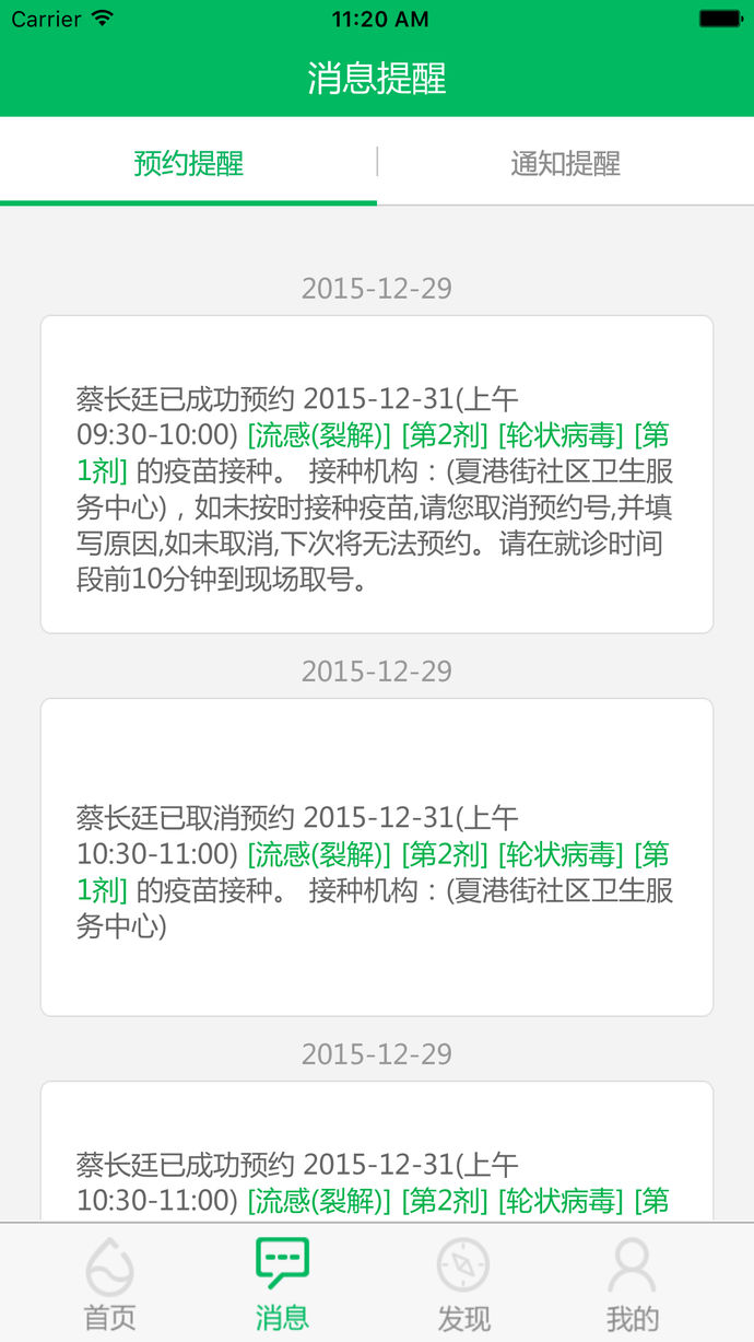 接种前优苗疫苗接种app自动提醒接种日期及种类,再也不会忘记打疫苗。