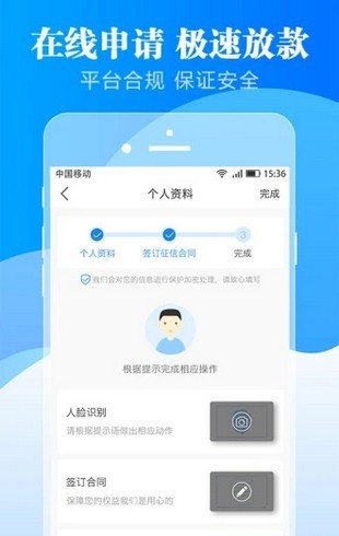 1、手续简单:只需身份认证,3分钟完成申请。2、极速审核:5分钟极速审批,借钱比花钱还快
