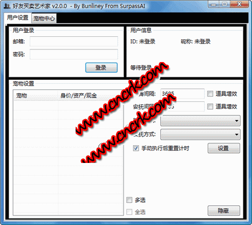1.登录时请等待下方“宠物设置”框组中刷新出宠物列表后再点击“开始”