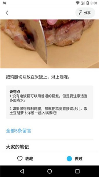 记录灵感:跟做菜谱可以随时添加文字笔记,或上传图片记录下厨记忆