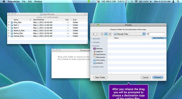 Touvaly Mac版是一个新颖的拖放实用程序,可以帮助你伪拷贝所有的文件、文件夹、CD和体积并保存全部文件夹结构。使用Touvaly Mac版以创建一个使用空间非常小文件集合的虚拟目录。你可以双击一个伪副本,Touvaly将打开原来,在该项目的相应的应用程序。您可以搜索或浏览伪文件目录由他们的“外部”的文件属性,就好像他们是真正的文件。