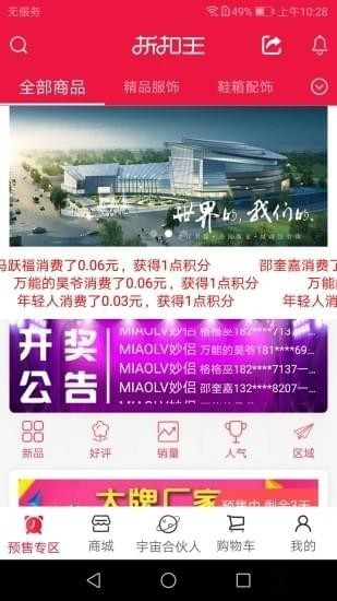 折扣王app是目前非常前沿的CDCP电商商城,折扣王依托自身强大的行业整合能力,为用户提供衣食住行的全方面服务!折扣王除普通的商品购买外,特别推出预售商品的下单购买,购买预售商品还有机会一分钱获得!【软件优势】