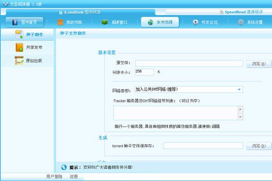5、软件还支持发布资源,提供种子制作、共享发布、原创出版功能。