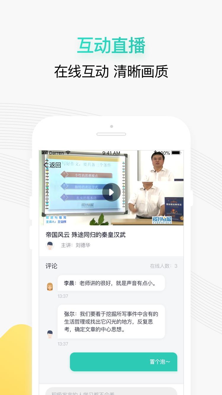 【视频直播】:名师在线直播辅导,互动教学;让孩子学习时间更自由,提高学习效率。【课程点播】:哪里不懂看哪里,无限回放,不错过每一个细节;让学习变成一件快乐的事情。