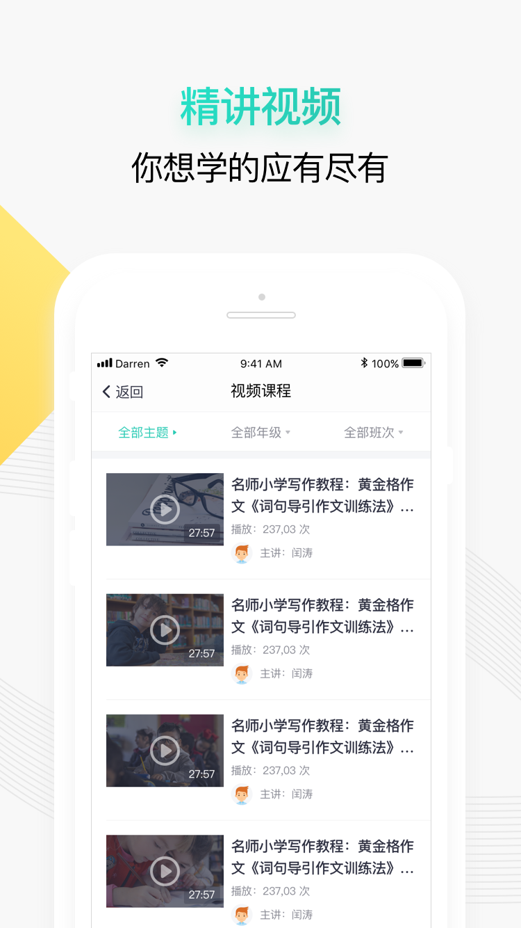 拥有4000多名教师,200多万套专题视频,所打造的专注于K12教育的视频课程,其目的是让更多的学生能够学习到最经典的课程。