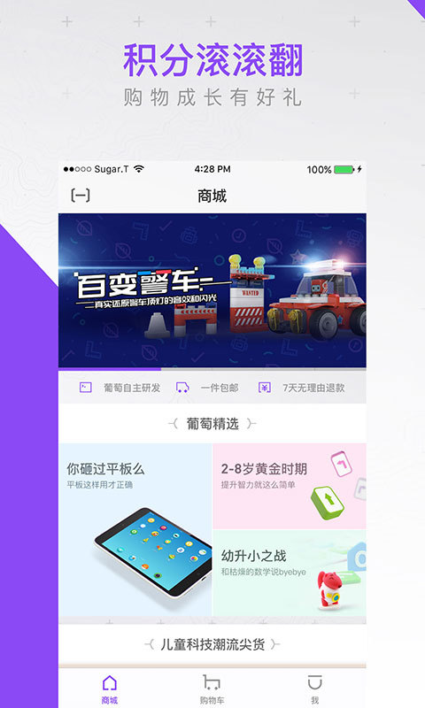 葡萄科技顺应科技生活的趋势,运用世界前沿技术把想象力变成现实,带领孩子探索无尽的未知领域,守护孩子源源不断的好奇心,创造属于他们自己的未来生活方式。科技不应只是成人的专利,作为互联网的原住民,孩子们的成长更应得到科技最前沿的馈赠。我们带给孩子更丰富的、健康安全的产品体系,为孩子提供更好的全方位的童年生活; 输出正确的价值观,帮助孩子塑造更好的人格; 搭建父母与孩子之间的桥梁,让父母更好的陪伴孩子的成长。