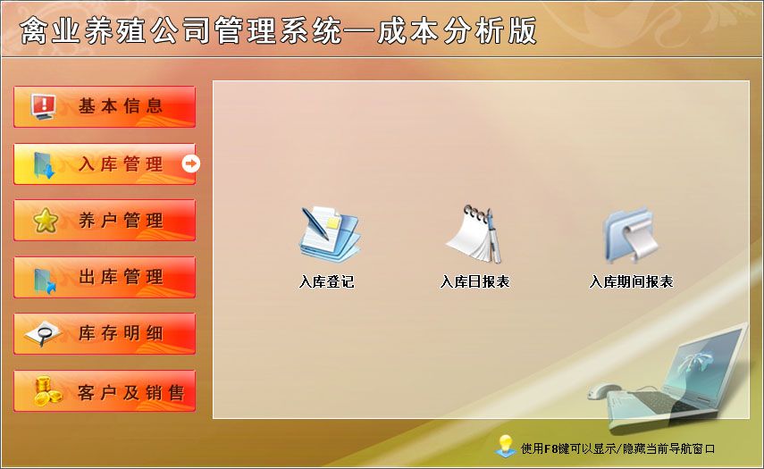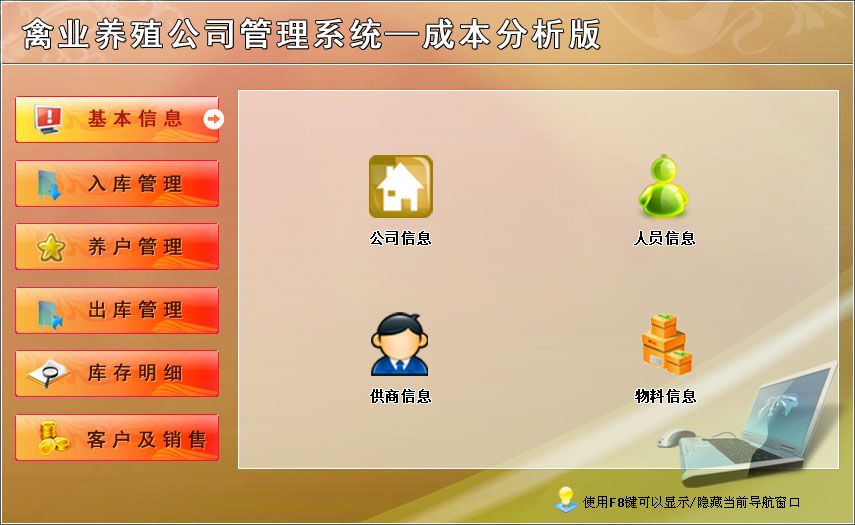 《禽业养殖公司管理系统—成本分析版》是一款适用于家禽业养殖公司日常管理的软件。本管理系统多处具有快速辅助录入功能,操作简单,易学、易用;处理功能高效强大,是协助玩具租赁行业的好帮手!
