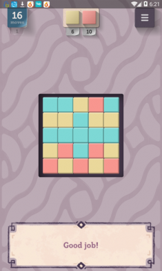 3、我们有一个带有正方形颜色的网格。我们的想法是收集两个或多个相同颜色的正方形并点击它们以消除它们。在每次任务中,我们都必须收集某些颜色。当我们设法同时聚集多个方块时,我们会得到油漆或墙纸的立方体,并且通过它们,我们可以通过一次触摸消除更多的方块。