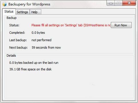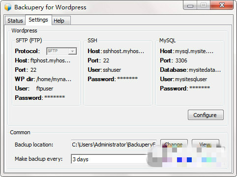 1、运行Backupery for WordPress2、点击settings可以配置一下数据库信息