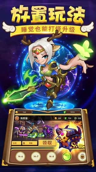 1、放置玩法,睡觉也能打怪升级;2、海量的英雄,等我们来收集;