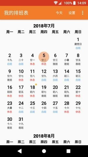 【排班】用户可以在我的排班表app记录排班内容。