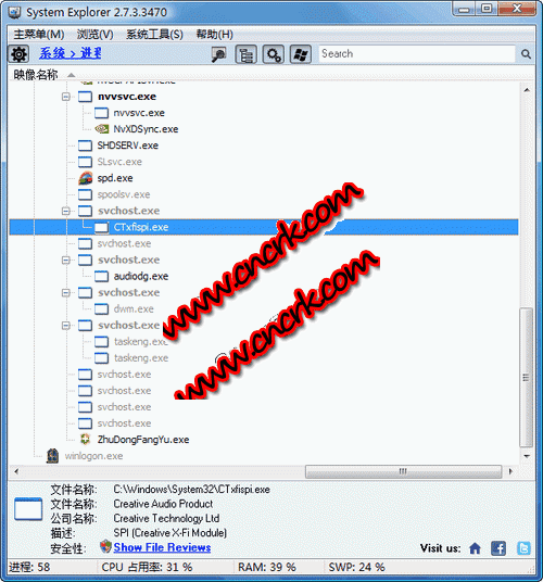 system explorer是一款免费的系统资源管理工具。可以用来代替 windows 任务管理器,system explorer能够显示当前系统所运行的应用程序,进程和启动项等等的详细信息。它除了有windows 任务管理器所有的功能以外,它更可以控制电脑中所设定的开机程序、 internet explorer 的插件、系统的服务、移除已经安装的软件、察看被开启的程序、监控网络的使用情况..等等。