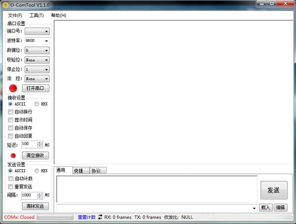 主界面软件界面如下图所示,与其他串口软件没有太大区别,支持ascii码hex切换,支持自动回复,支持重复发送,自动追加计数值等功能。