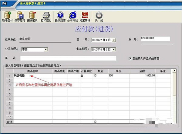 4.应付管理 :用于管理应付款和付款帐单。