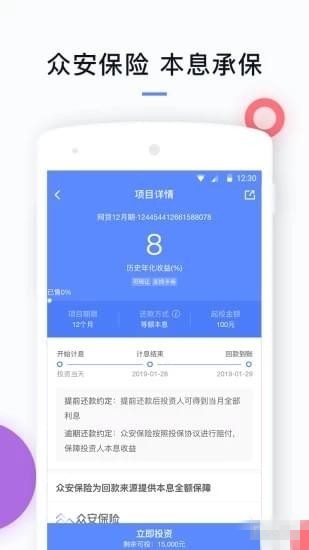 超高收益:100元起投,年化收益高达10%本息保障:众安保险为在小赢网金众安保险专区销售的理财产品提供本息全额保障。