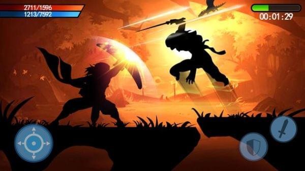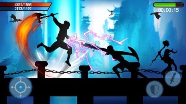 玩家们通过屏幕左下角的两个按钮来控制左右走位,右下角则有跳跃、攻击、暗器等按钮,点击这些按钮即可轻松完成战斗控制。本作虽然按钮不多,但是使用不同的按钮组合可以获得各种连招攻击,例如跳跃中使用攻击可以向下冲击,移动跳跃中使用攻击可以在空中滑行等。本作的操作按键位置与大小都很合适,操控起来流畅度也很好,并且玩家们还可以使用技能招式组合来获得连击效果,给玩家们创造了战斗的无限可能。