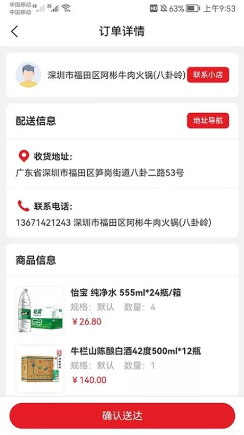 2. 送达确认:完成配送后可在APP中确认送达,确保订单的完成,非常的实用;