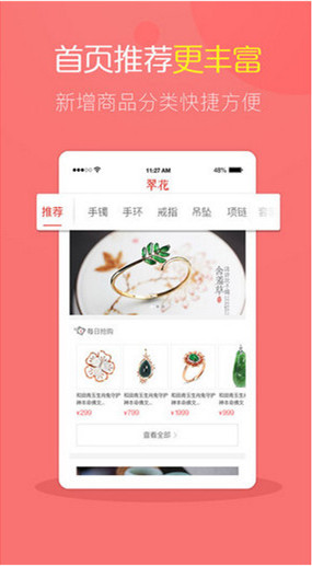 1.首页推荐更丰富,商品分类。2.每天还可赚多少,清晰明了。