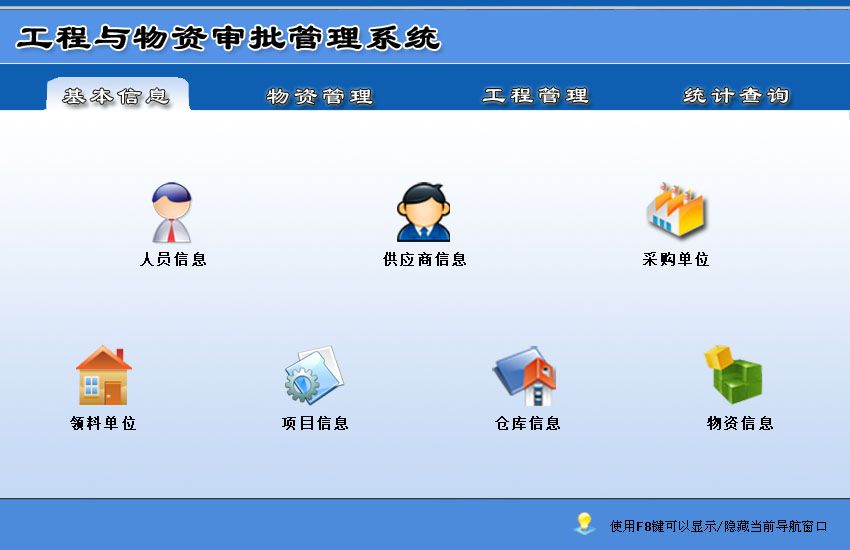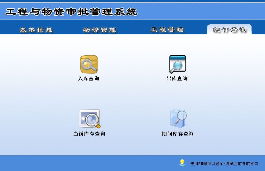 《工程与物资审批管理系统》是专为企业管理工程与物资审批的一款管理软件。软件集物资采购、入库、物资出库审批、库存、工程管理、统计查询与一体的管理软件。。软件界面设计简洁、美观其人性化的管理可以使用户轻易上手,大大节省工作时间,提高工作效率。科学的管理方法会给您带来无限的效益,工程与物资审批管理系统将是您明智的选择。 《工程与物资审批管理系统》包括如下功能: 基本信息:人员信息、供应商信息、采购单位、领料单位、项目信息、仓库信息、物资信息 物资管理:采购订单、入库登记、出库管理、退库登记、当前库存 工程管理:工程项目施工委托单、工程验收证书 统计查询:入库查询、出库查询、当前库存查询、期间库存查询