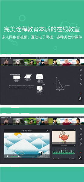 跨平台支持:跨平台支持PC、Mac、Android、iOS、Web、微信6个终端同步教学无缝对接教育机构:为小型机构提供功能完善的课程管理及在线监课管理后台为大型机构提供完整、安全、稳定的API和SDK接口