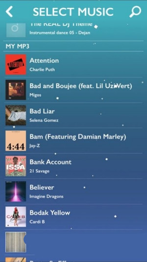 1.启动应用程序并移动到“选择音乐”。2.您可以看到您的设备上有MP3文件和一些MELOBEAT歌曲。