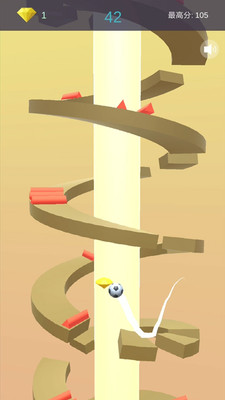 控制彩色弹球在彩色的螺旋彩环上跳跃,粉碎,通过圆环来获得分数;如果彩色弹球碰到了不同色的彩色障碍则游戏结束,玩家们要做出自己的快速反应;