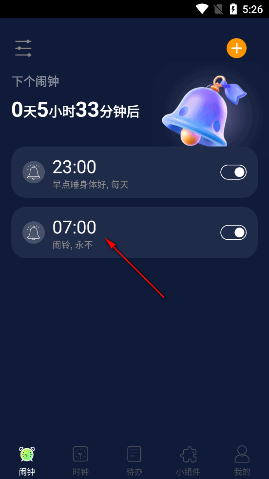 点击 【闹钟】图标,然后点击其中的【+】符号。
