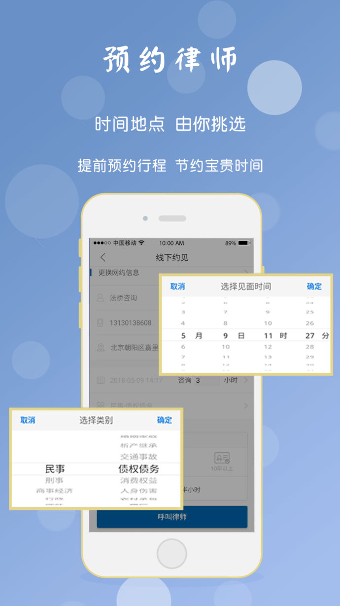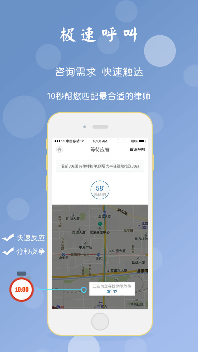 即时语音随时随地,寻找律师,受理订单,拿起电话,一键通话。