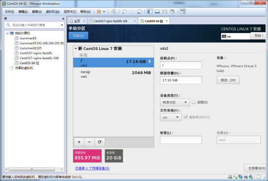 上面内存填17.16GB,这边得看自己设置的虚拟机内存。我这里总空间比参考设置分区的图例少0.48GB容量,所以就直接这样设置了。