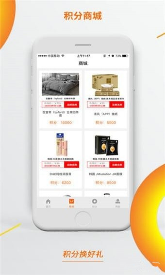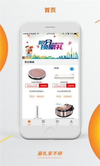 用户通过每日签到、邀请好友、升级来获取积分,在这里,您可以赚积分、兑商品,好礼兑回家!