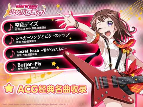 BanG Dream是一款以《BanG Dream!》世界观为主轴的音乐&文字冒险游戏,操作上手简单,还可以同时5位玩家进行游玩。玩家在游戏中将会扮演一个新晋的LIVEHOUSE【CiRCLE】的经纪人,将会带领Poppin Party等几支乐队进行演出,可以在游戏中游玩到耳熟能详的动画和现实live出现的歌曲,每支乐队都会有其独特的故事线,玩家还可以在故事模式中看到应用了2D live技术的人物立绘,让人物更加生动,玩家更有代入感。