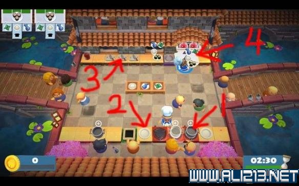 如下图箭头4,这是窗口,用于将成品食物提交上去,以获得小费。